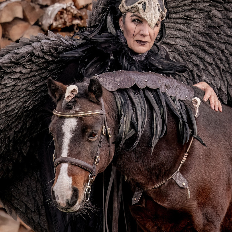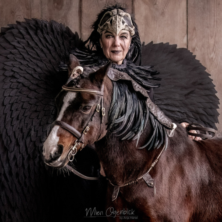Wir hatten diesmal zwei Rollen, tagsüber die Königin der Herzen und abends bei Beginn der Dunkelheit einen Auftritt als Krähe zu mystischer Musik.